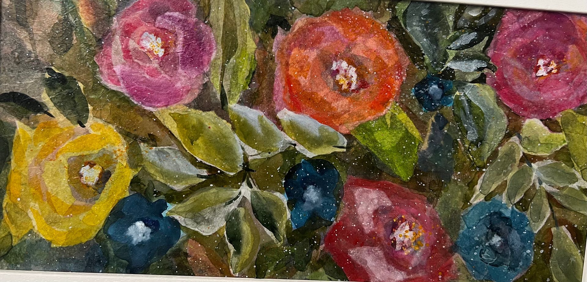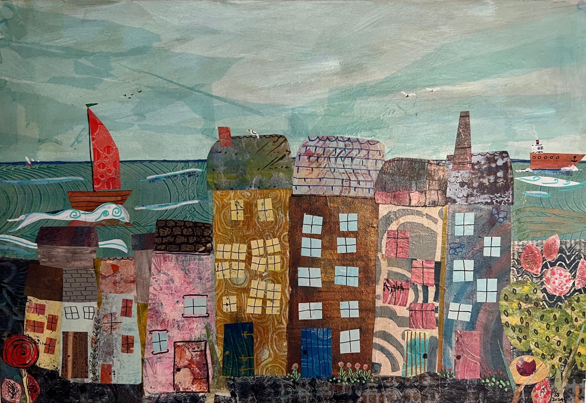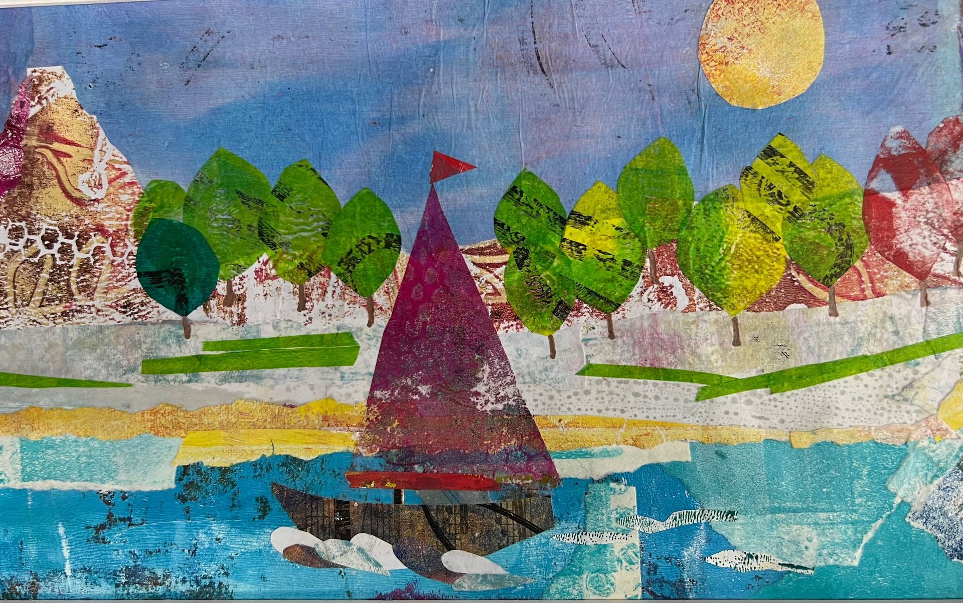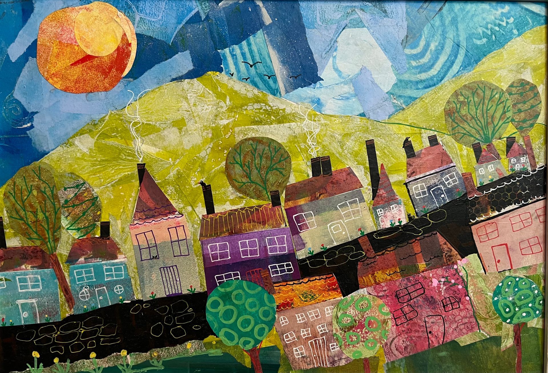 collage made with Gelli print papers, with a bit of gelpen detailing, on boxed board with edges covered, varnished, 40x50cm, £125.00